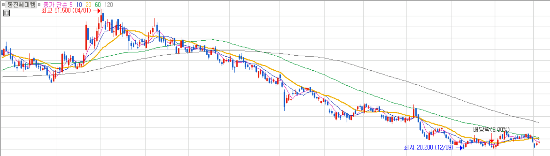동진쎄미캠은 반도체 및 디스플레이용 소재를 주력으로 생산하는 기업으로, 반도체 산업의 경기 변동에 직접적인 영향을 받습니다. 최근 메모리 반도체 업황이 둔화되면서, 주요 고객사들의 생산 감축이 이루어졌습니다. 이로 인해 동진쎄미캠의 주력 제품인 포토레지스트의 수요도 감소하여 실적에 부정적인 영향을 미쳤습니다.